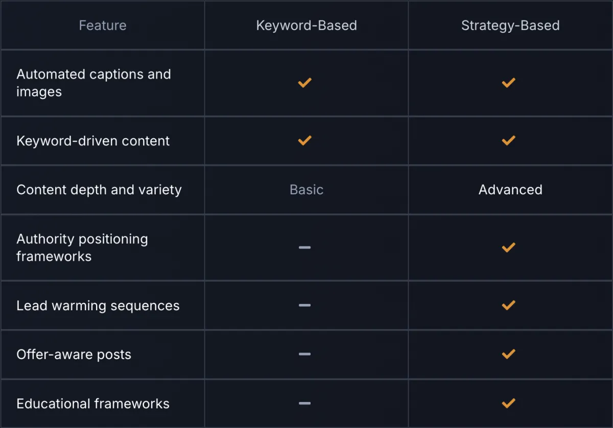 Automated content generated from your keywords and services. Posts are created around your core offerings and topics.
